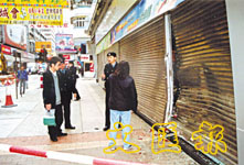 昨晨8時29分,有人發現上址一幅高12呎、闊10呎捲閘損毀呈一個6乘3呎的大洞。內裡飾櫃的電器受波及散落地上。警員到場調查,並通知蔡姓30歲經理返回點算,結果證實失去一批數碼攝錄機。