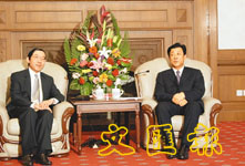 黑龍江省副省長王利民會見香港青聯主席伍威全一行。 (本報哈爾濱傳真)