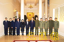 特首董建華昨在禮賓府宴請駐港部隊(右起):劉良凱少將、熊焰少將、王玉發少將、王繼堂少將及楊德清中將,曾蔭權、梁愛詩、何志平、李少光、林煥光及葉文輝亦有出席。