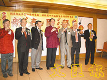港進聯主席劉漢銓、中聯辦港島工作部部長王如登、中西區區議員林乾禮等主禮嘉賓,舉杯祝願香港經濟復甦,繁榮穩定。 (莊海源 攝)