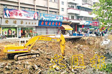 地陷發生後,施工人員趕赴現場進行搶修。(網上圖片)