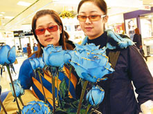 南京大洋百貨店堂出售一捧「另類」玫瑰——「藍色妖姬」,這種玫瑰每枝售價一百八十元,去年曾火爆一時。 (中新社)