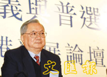 胡應湘在香港論壇中談普選。