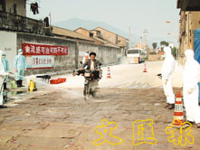 疫區內某摩托車過關時趣圖。 (陳悅 攝)