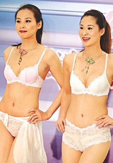 台灣地區近日氣溫回暖,桃園縣中壢某百貨公司14日展示流行內衣秀,講究腰臀曲線設計的女性貼身衣物,希望帶動流行趨勢。(中央社)