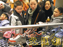 在上海南京東路步行街寶大祥商店,「暴走鞋」專櫃吸引了眾多家長和學生。(新華社)