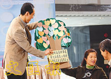 唐英年接收市民心願樹。 (李志樑攝)