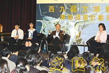 有年青人更直接問到,怎樣避免西九龍文娛藝術區重蹈新機場以及維港匯的覆轍。曾蔭權表示,維港匯的問題目前仍在檢討中,而且其在恢復本港沙士後經濟活力方面有一定成績。至於新機場在啟用初期確實出了問題,但在社會共同努力下已被克服,現在本港機場更已獲得很高的國際地位。