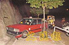 同時間,的士沿斜路溜下逾百米,至耀貴樓對開彎位,越線掃毀6米鐵欄,撞撼山邊才停下,尚幸當時正值夜深,人車稀疏,未有殃及無辜。