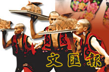 南澗農民正在表演「南澗跳菜」,又稱「抬菜舞」,是彝族民間宴席上菜時的一種禮節性舞蹈。 (中新社)