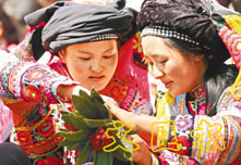彝家歡度插花節。 (新華社)