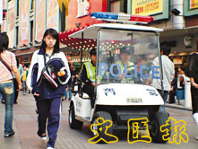 東門公安駕駛小型警車上街巡邏。 (本報深圳傳真)