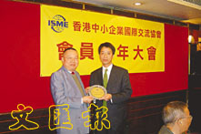 【本報訊】(記者 張萍)香港中小企業國際交流協會的「2004第四屆會員周年大會」日前舉行,會議通過了2003年的會務工作報告及核數報告,並成功選出新一屆理事會,梁礪鋒新當選會長,工業貿易署副署長梁卓文蒞臨主禮。