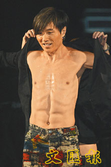 周啟生除了玩踢爆,更大玩性感,他在台上突喊「好熱」,繼而除衫裸露上身,亦有穿上比堅尼的鬼妹在台上跳舞。