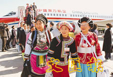 1日,參加第十屆全國人民代表大會第二次會議的雲南代表團抵達北京。 (新華社)