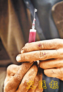 1名吸毒者正準備注射毒品。