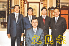 候任主席陳耀莊(前)與(後左起)第四副主席馬清鏗、第一副主席王定一、第三副主席王家龍及第五副主席李三元合照。