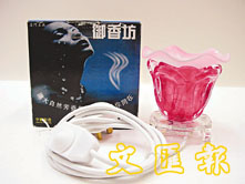 該款具有粉紅色、綠色或藍色玻璃燈罩的香薰燈,並未附有任何牌子、型號及電壓資料。