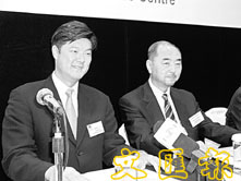 萬順昌主席兼行政總裁姚祖輝(左)表示,預料黃埔之鋼鐵加工中心可在04至05財政年度盈利。 (李永青 攝)