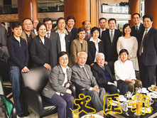 蕭蔚雲和許崇德與部分當年採訪基本法起草的記者合影。