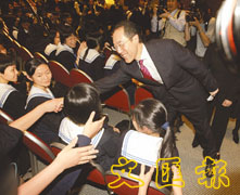 唐英年勉勵青少年要建立自信,勇於挑戰未來。 (劉國權 攝)