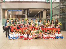【本報迅】「雙方出擊 芳華十八」新樂組合於昨日專程來港出席參與今晚於無線電視城舉行之一年一度大型籌款節目《博愛歡樂傳萬家》。該組合更會於節目內演奏一曲《掀起你的蓋頭來》為晚會籌款。當她們抵港時受到一班小朋友熱烈歡迎,除大型橫額外,更每人獻上鮮花一束,逗得眾人開心不已。