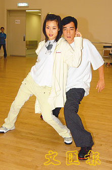 【本報訊】容祖兒和陳小春在今(20日)晚「博愛歡樂傳萬家」節目中會大跳「辣身舞」,昨日兩人到電視城排練,祖兒表示第一次公開跳辣身舞有些緊張,連日來更失眠,一方面因為排練時間不足,另一方面小春曾是專業舞蹈員,有這對手當然感到壓力。