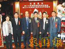 右起:何羨松副市長、楊德理事長、范瑞方副部長、張瑞境監事長等在晚宴上合影。 (鄭群 攝)