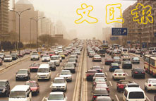 29日下午,北京遭遇今春以來最強烈的一次沙塵天氣,城市上空沙塵彌漫,市內主幹道上車行緩慢。 (中新社)