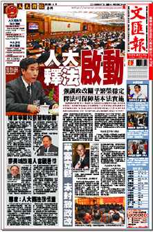 【本報訊】十屆全國人大常委會第八次會議為期5天,在下星期二的閉幕會上將表決通過對基本法附件中有關行政長官和立法會產生辦法的條文的解釋草案。