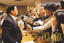 喬曉陽在會後接受中外記者提問。(中新社)