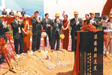 去年8月深港西部通道工程奠基典禮在深圳舉行,曾培炎(前排左三)代表中央政府出席奠基典禮。 (資料圖片)