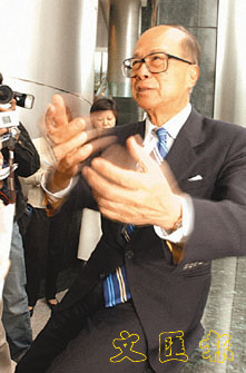 有「超人」之稱的李嘉誠昨在長江集團中心門外巧遇多家報社的記者。談到政務司司長曾蔭權領導的政制發展專責小組前日公布的第二號報告,「超人」讚揚報告功夫做到十足。他說:「我相信曾蔭權的三人小組其實不止三人,下底唔知幾多人,因此功夫做到十足。」