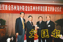 【本報訊】(記者 鄭 群)應江蘇省海外聯誼會和省僑聯的邀請,由香港經貿商會、香港文化傳播協會組成的香港工商文化考察團一行10人,於2004年4月9至12日訪問無錫、蘇州。考察團由香港經貿商會副會長、江蘇省僑聯顧問、江蘇海聯會常務理事梁寶衡任團長,許文前、張仲良為副團長,考察團此行先後與無錫、蘇州海外聯誼會及僑聯簽署友好合作協議。