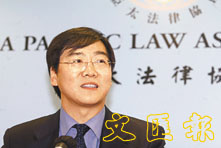 亞太法律協會昨日舉行國家憲法與香港基本法公開講座暨2004國家統一司法考試培訓班開學式,邀請到中國政治大學法學院副院長焦洪昌、身兼基本法委員會委員的香港大學法律學院教授陳弘毅擔任主講嘉賓。講座吸引超過一百人參加。