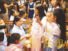 不過,小一學生被闖入課室的狗兒嚇得大哭,小校長便即時「活學活用」,運用從社工學來的「深呼吸法」,叫同學「深呼吸」冷靜下來。