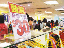 三月份的消費物價指數下跌2.1 % 。圖為百貨商場的減價促銷吸引大批顧客購物。(資料圖片)