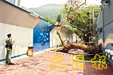 意外中倒塌的金鳳樹,高25呎、直徑2呎。植於淺水灣海灘觀音廟路邊。據街坊表示,該樹至少有50年樹齡。以往樹是直向生長,惟近年來生出不少樹丫,直徑亦有約7至8吋。