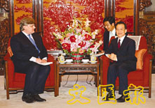 溫家寶28日在中南海接受路透社總編輯訪問。 (路透社)