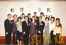 仁濟醫院董事局李文俊主席及荃灣民政事務專員陸仿真太平紳士與雙方成員合照。