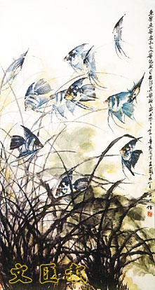 嶺東著名繪蘭前輩畫家王蘭若畫的魚樂圖