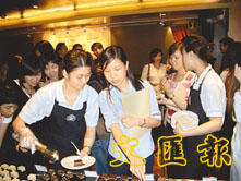 記者們紛紛試食十款蛋糕。