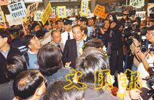 李柱銘赴美出席聽證會返港時在機場受到大批市民包圍,責其為「賣國賊」。(資料圖片)