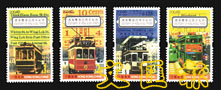 香港郵政署長蔣任宏昨日宣布將於5月27日發行「香港電車百周年紀念」紀念郵票。整套郵票包括四款新郵票及一張面值5元的郵票小型張,分別描繪出香港電車在1904年至2004年間的五個重要歷史發展階段。圖為推出的紀念郵票。
