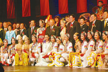 特首董建華、中聯辦主任高祀仁、副主任李剛及曾慶淮董事長等上台和團員大合照。