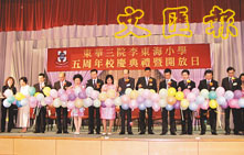 【本報訊】(記者 甄健輝)位於天水圍的東華三院李東海小學昨日舉行五周年校慶兼開放日,並邀請了教統局元朗區總學校發展主任何鄭玲主禮,而東華三院顧問暨歷屆主席會主席李東海更捐出10萬元,成立李東海獎學金,獎勵該校有傑出表現的學生。