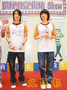 【本報訊】(記者 李思穎)「選民豋記街坊Show」昨日在東涌一個商場舉行,出席的歌手有梁洛施、麥浚龍及吳日言。梁洛施自言因下月二十三日才滿十六歲,故此未有資格做選民,不過媽咪及姐姐都已登記做選民。