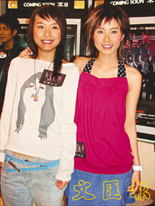 鄧麗欣(左)與Theresa兩「餅女」一起看首映。