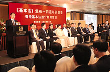 昨日,由香港基本法推介聯席會議在港主辦的《基本法》頒布14周年研討會舉行開幕式,彭清華致開幕詞。 (新華社)