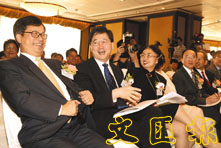 鄭耀棠、林瑞麟及梁愛詩在研討會上。 (劉國權 攝)
